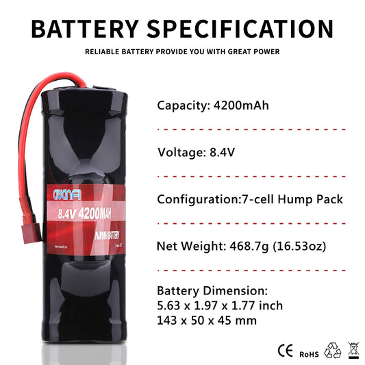 AWANFI 8.4V NiMH 4200mAh 7-Cell Hump Pack RC Battery with Deans Plug for Most 1/10 Scale RC Car Truck Boat Traxxas LOSI Associated HPI Kyosho Tamiya Hobby(2 Pack)