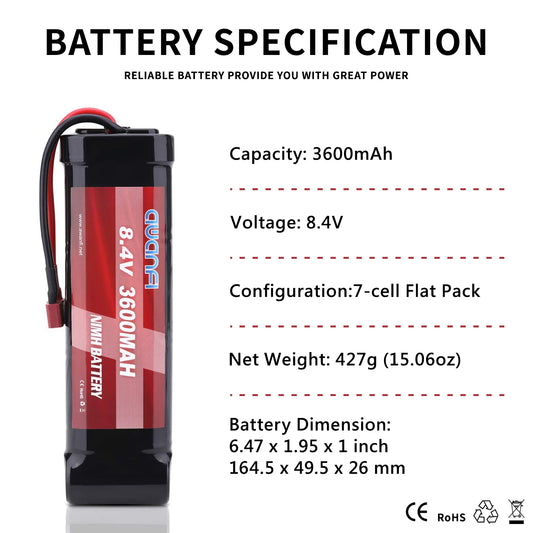 AWANFI NiMH RC Battery 8.4V 3600mAh NiMH Hump Pack RC Battery with Deans Plug for Most 1/10 Scale RC Car RC Truck RC Boat Traxxas LOSI Associated HPI Kyosho Tamiya Hobby(2 Pack)