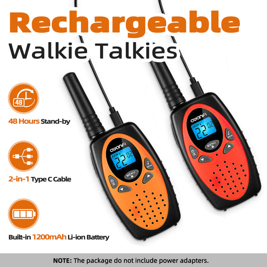 AWANFI Walkie Talkies for Kids Adults 2 Pack, Rechargeable Walkie Talkies Long Range with 22 Channel 1200mAh Li-ion Battery Type-C Cable, Portable FRS Walky Talky 2 Way Radios for Boys Girls Toy Gift