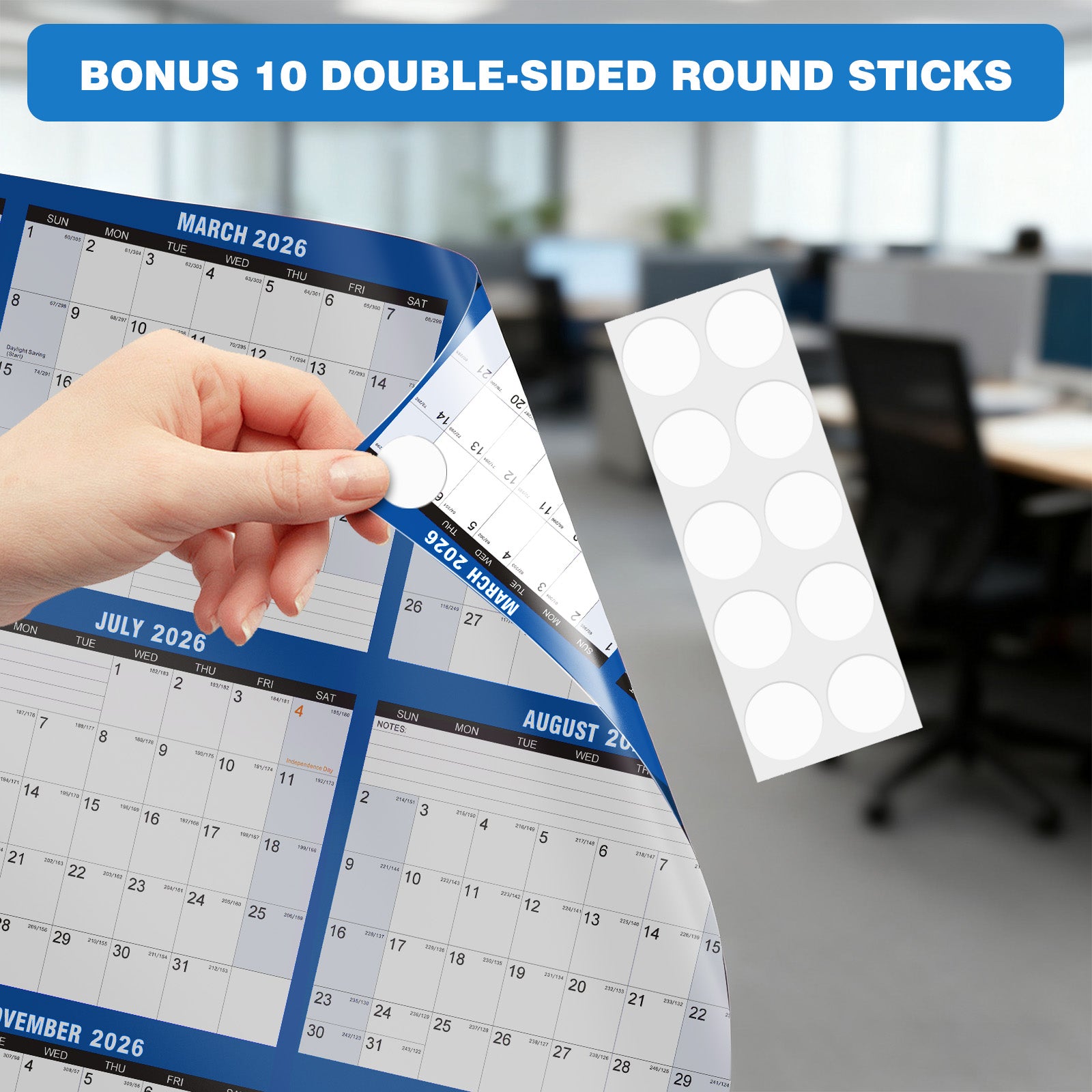 - Complete Kit: Included with the calendar are four colored markers and ten removable mounting tapes for convenient and damage-free installation on various wall surfaces.