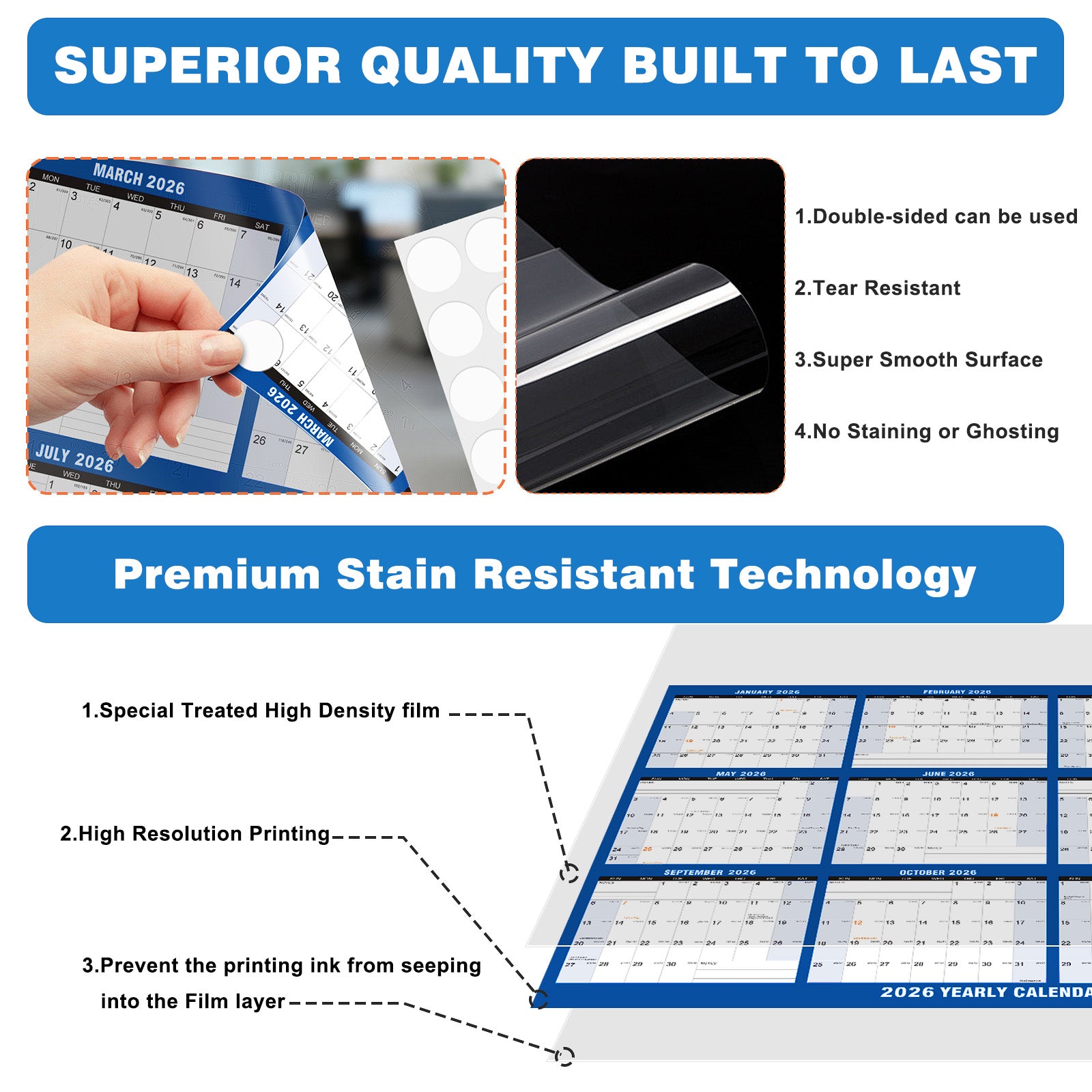 - Enhanced Durability: Featuring a special treated dry erase surface with a nano-erase film, this calendar is rewritable, dust-proof, and wipes clean effortlessly without ghosting or stains, even after extended use.