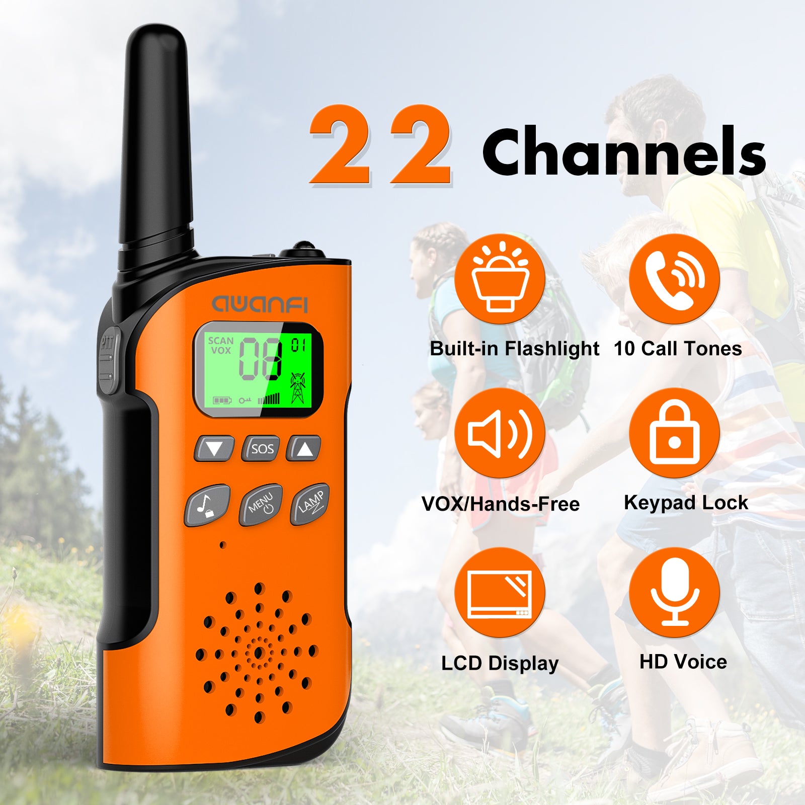 - Walkie Talkies with 22 Channels & 99 Privacy Codes