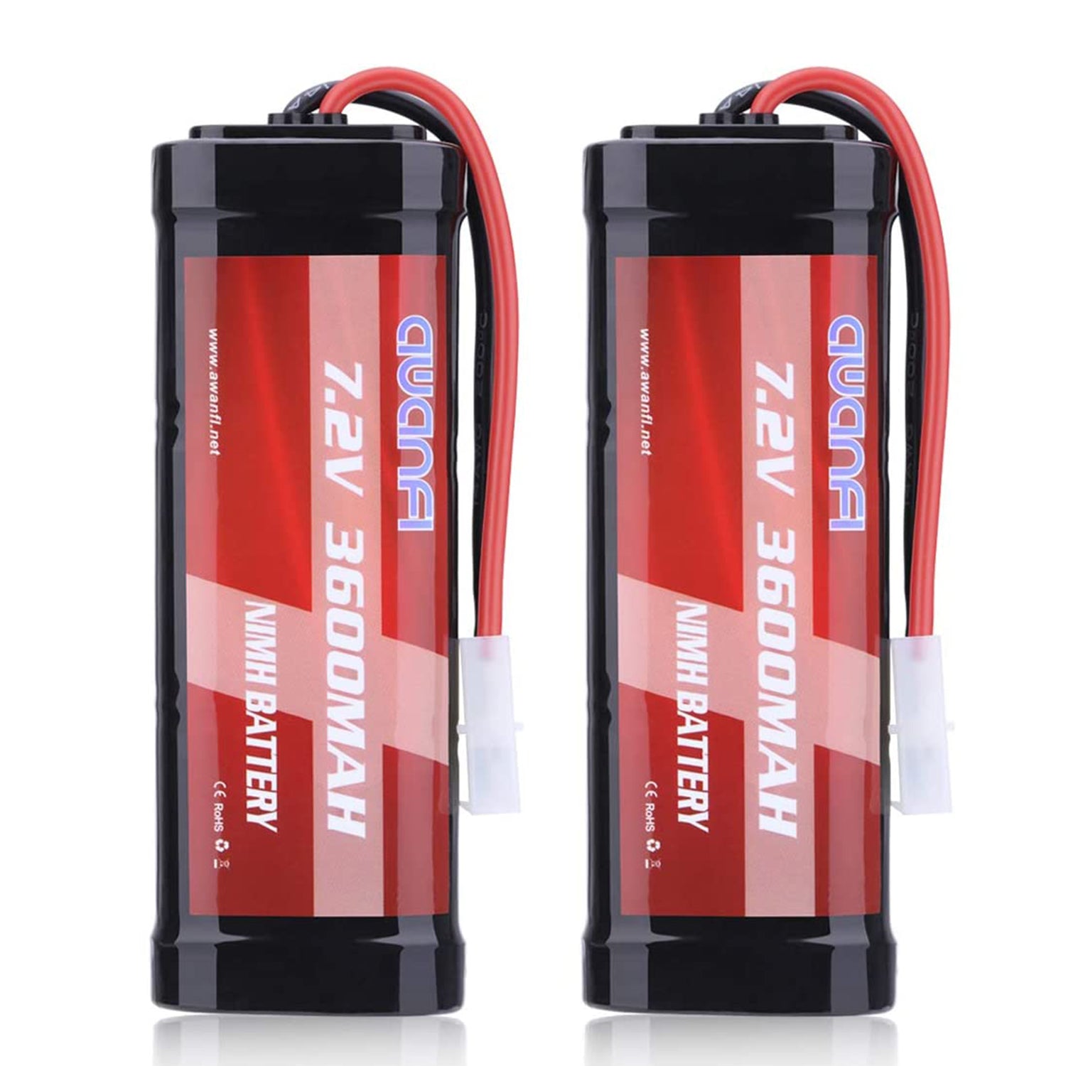 AWANFI 7.2V 3600mAh RC Battery High Capacity NiMH Battery with Tamiya Connector for RC Car RC Truck RC Boat Traxxas LOSI Associated HPI Kyosho Tamiya Quadcopter Drone Hobby(2 Pack)