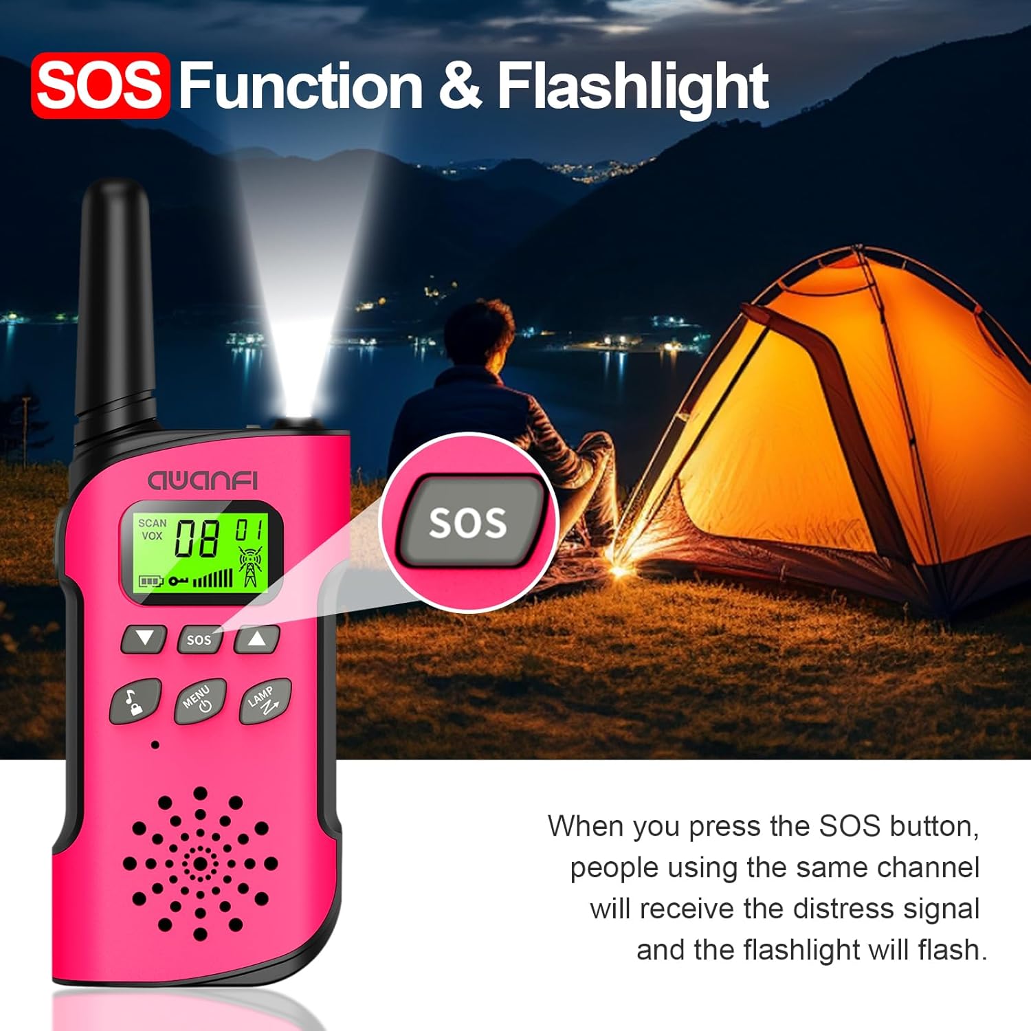 AWANFI Walkie Talkies Long Range 4 Pack, Walkie Talkie Rechargeable for Kids Family 22 Channels 2 Way Radios for Outside, Camping, Hiking, Gifts for Boys Girls