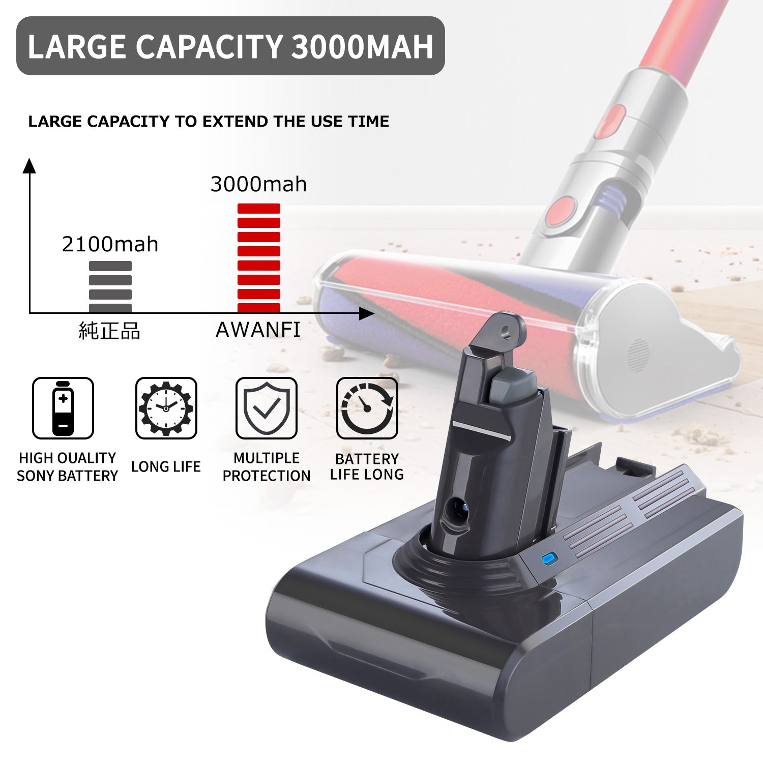 Dyson Battery V6 Large Capacity 3000mAh AWANFI Replacement Battery for Dyson DC58 DC59 DC61 DC62 DC72 DC74 SV07 SV09 animal/V6 fluffy /V6 trigger/v6 Absolute/V6 Motorhead. /V6 Extra/V6 Mattress